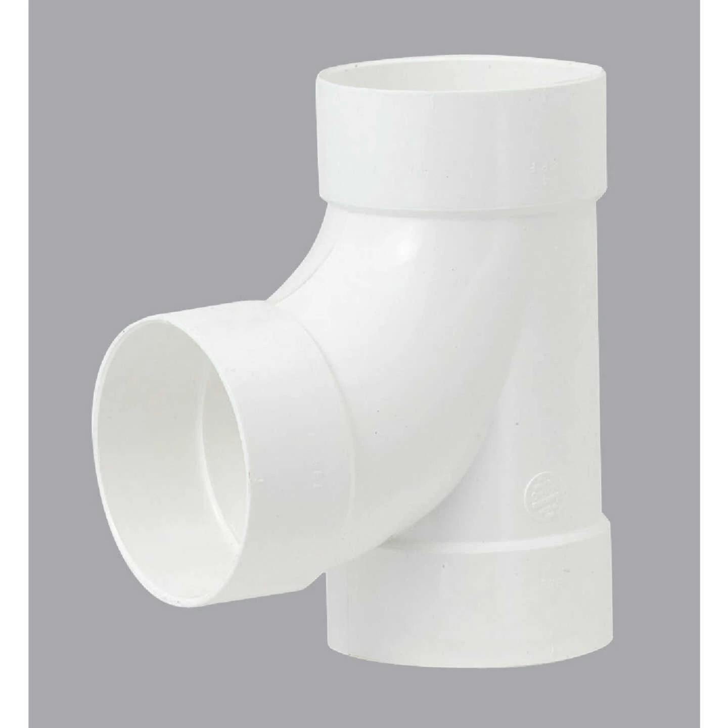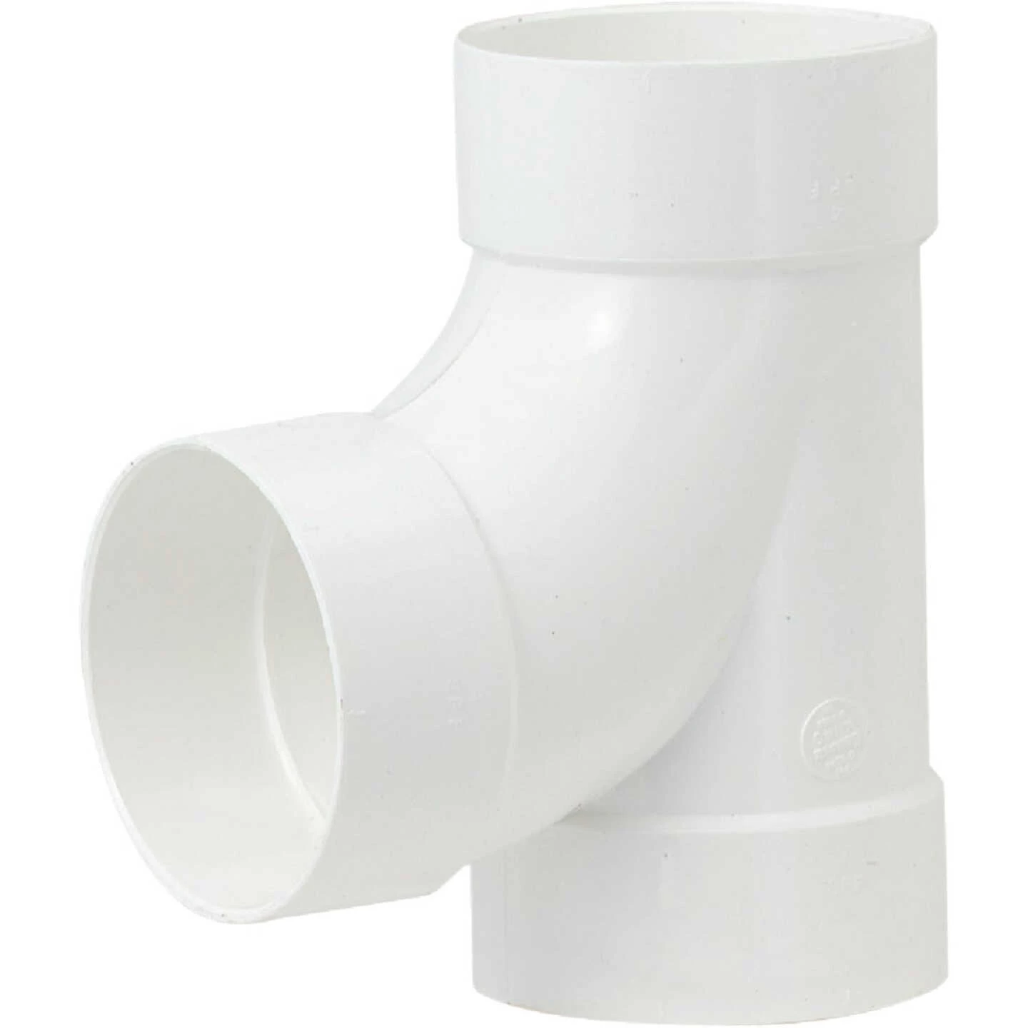 PVC sanitary tee 90 deg. outlet for thin wall drain and sewer pipe (ASTM 2729) and SDR-35 drain and sewer pipe (ASTM 3033 and D3034).