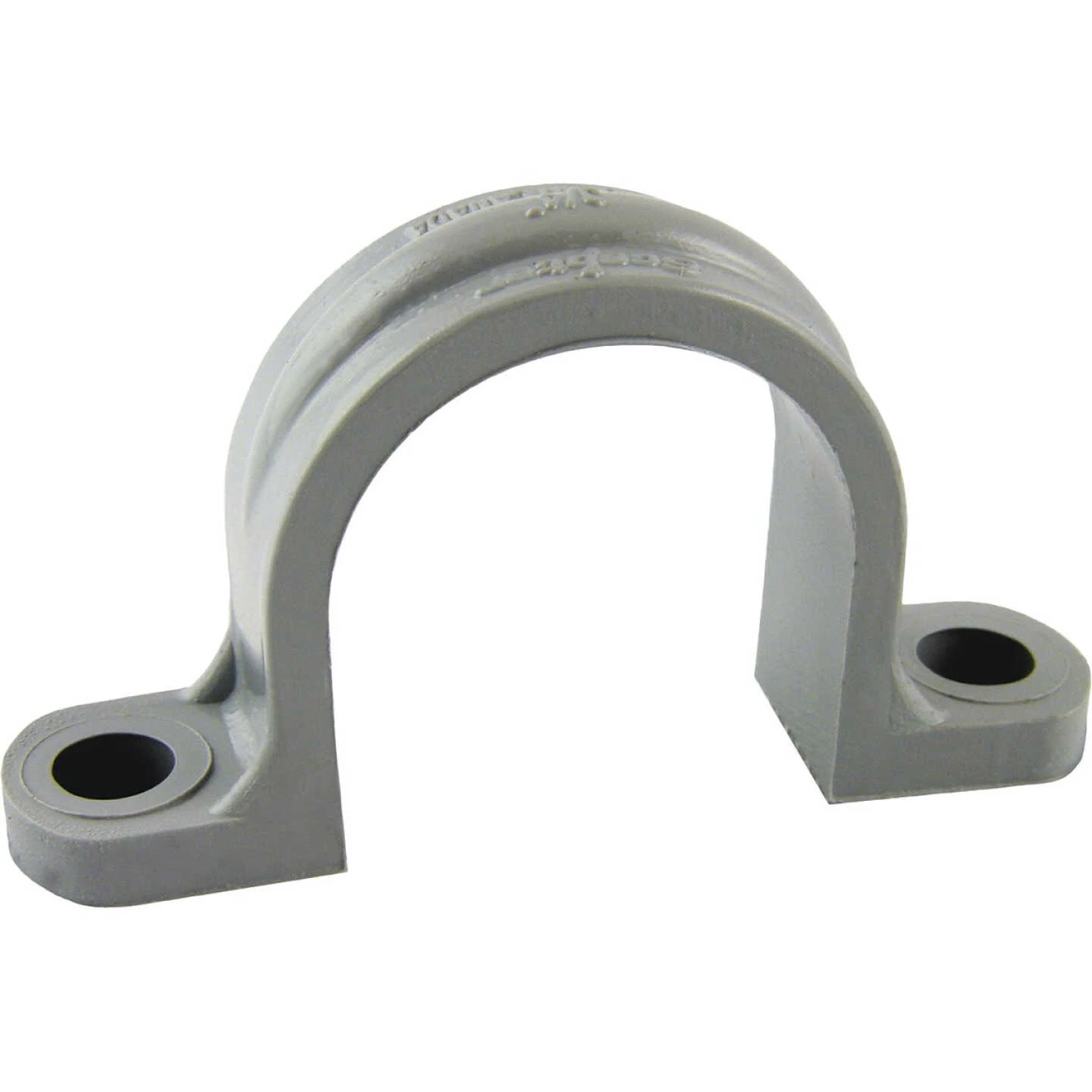 PVC pipe straps are used to prevent distortion in long runs of conduit while still allowing for thermal expansion. High impact and high tensile strength. PVC is resistant to external corrosion and pitting and will not rust. As a building material PVC offers outstanding fire performance characteristics. Retains original properties after years of exposure to direct sunlight, heat, and extreme weather. Resistant to a wide range of chemicals such as acids, alkalis or salt solutions. Resistant to fungi, bacterial action, rodents and termites, for a long and trouble-free life. Requires solvent cement to install.